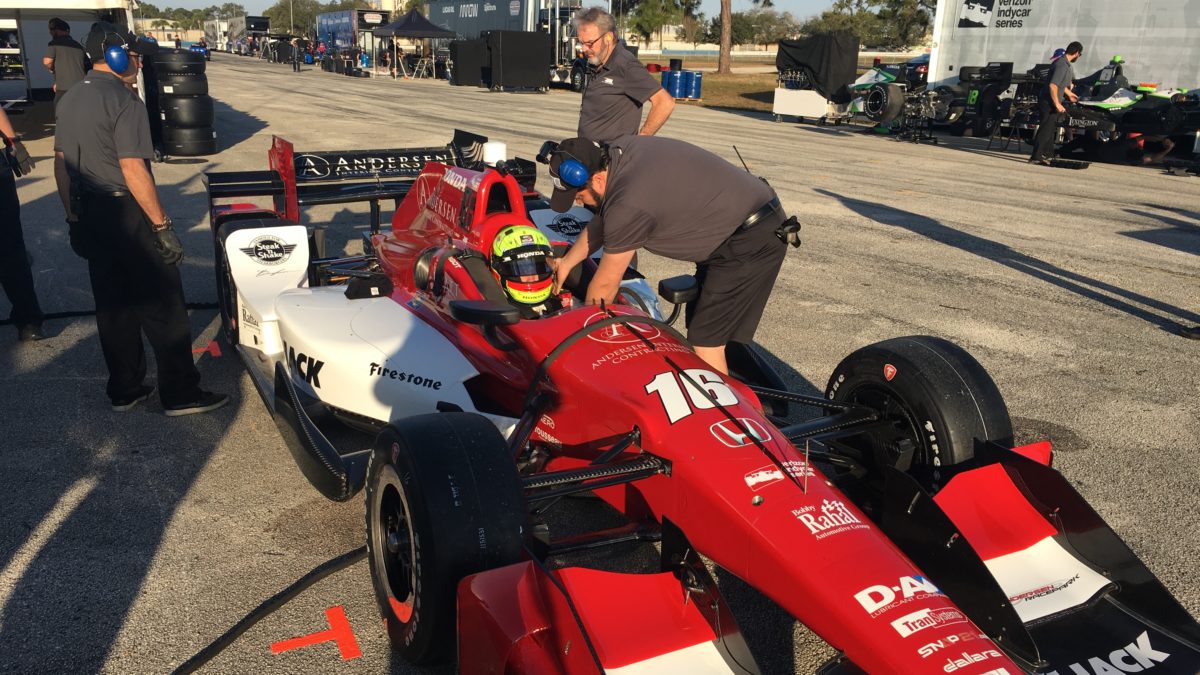 SEBRING, Fla. (March 1, 2016) – Spencer Pigot, 22, completed a trouble-free day of testing at the 1.65-mile Sebring International Raceway short course in preparation for his Verizon IndyCar Series debut at the Firestone Grand Prix of St. Petersburg on March 13. He completed 166 laps in what was his first time behind the wheel of an open wheel race car since clinching the 2015 Indy Lights title on Sunday, September 13 at Mazda Raceway Laguna Seca.
